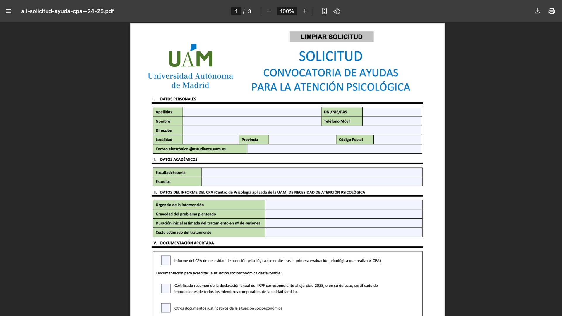 El primer formulario es la solicitud.