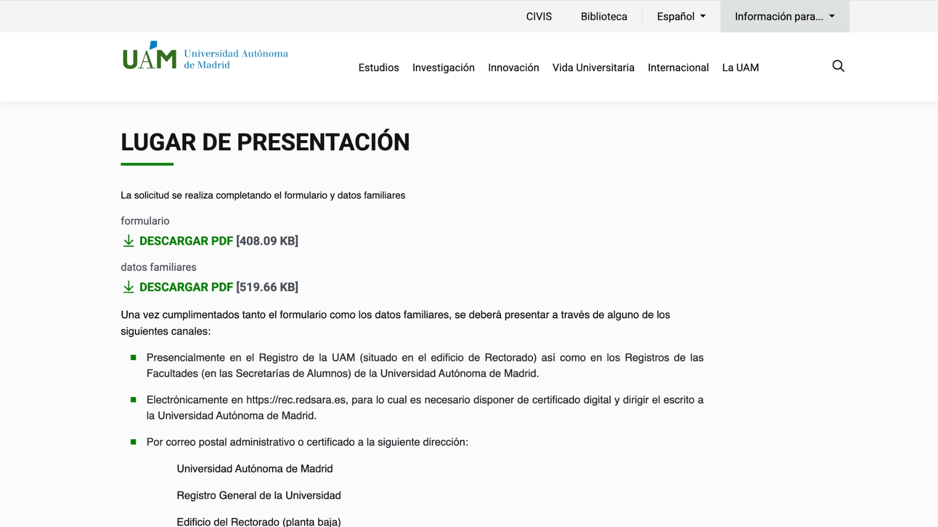 Con la solicitud impresa y terminada, y con la documentación adicional, debes presentarte en una oficina de registro de la UAM (hay una en cada facultad y escuela).