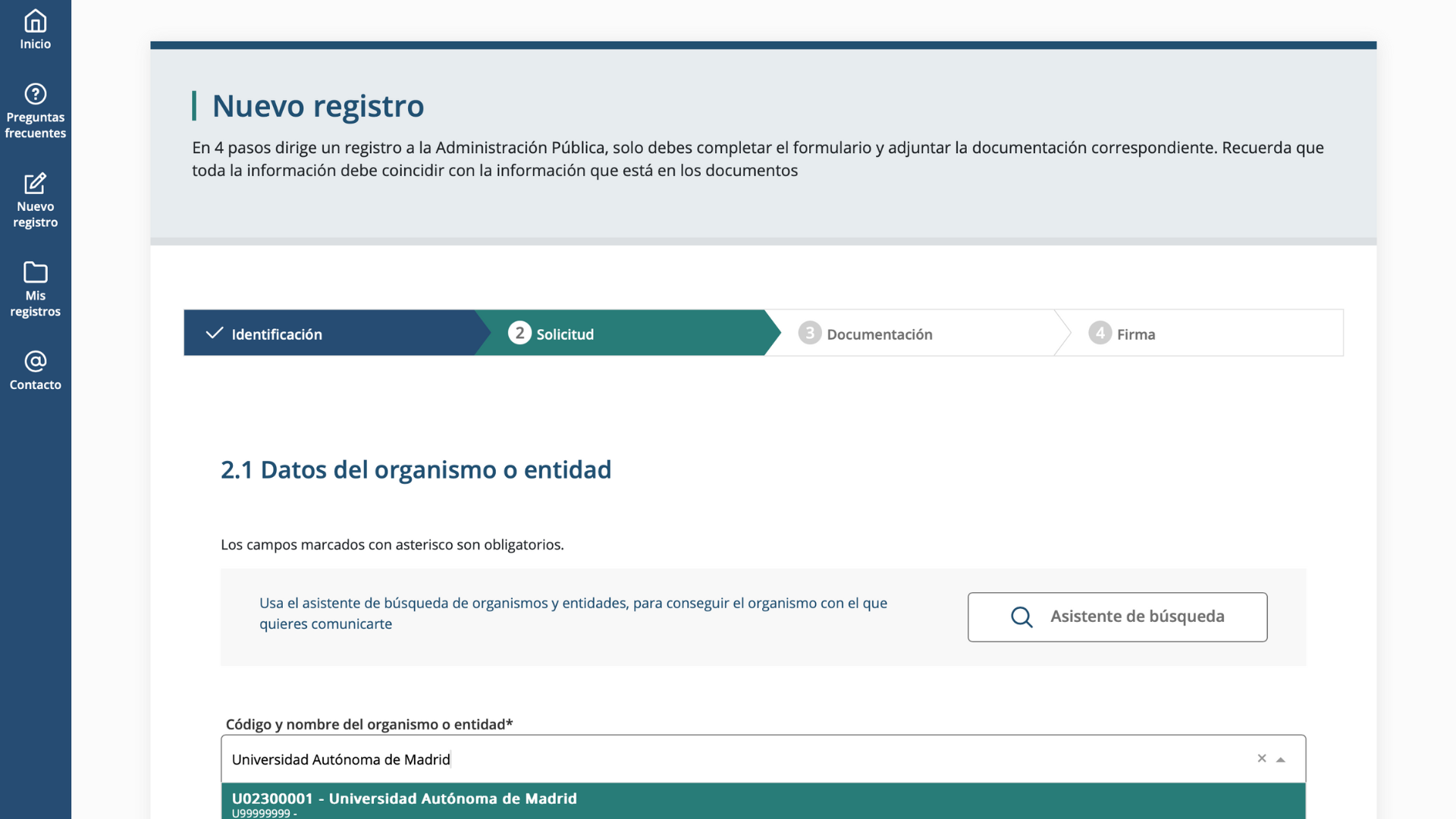 Sigue rellenando todos los datos restantes, adjunta toda la documentación (solicitud y documentación adicional) y firma el registro electrónico.